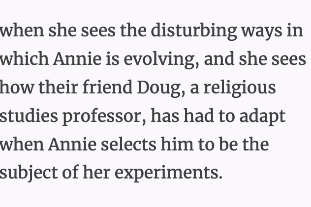 “Love leaves its mark on people. I know it left its mark on me; and I’m not just talking about my ex here. Love changes you. You know that from your own failed marriage. It changed you. Love changes you, like one of Lamarck’s giraffes that wants those berries so much it’s stretched its neck trying to reach them. Lamarck was wrong about that stretched-out neck being passed on to the giraffe’s babies, but maybe not about the giraffe wanting a longer neck.”