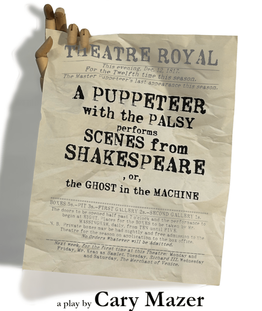 A one-actor, ten-minute play, A PUPPETEER WITH THE PALSY APOLOGIZES TO HIS PUPPET, adapted from A PUPPETEER WITH THE PALSY PERFORMS SCENES FROM SHAKESPEARE, OR, THE GHOST IN THE MACHINE, has been published in a special “Parkinson’s Poetry” issue of Rattapallax Magazine, “Walking the Line – An Anthology of Parkinson’s Writing.” Direct all inquiries about performance rights to the playwright.